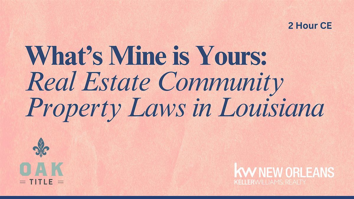 Join us for “What’s Mine is Yours: Real Estate Community Property Laws in Louisiana,” a continuing education class led by Oak Title on Monday, March 23 from 12–2 PM. This session will cover how Louisiana’s community property laws affect real estate transactions, including ownership rights, spousal consent requirements, and property classification during marriage.