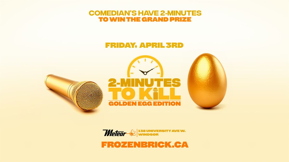 The Golden Egg Edition of 2 Minutes to K*ll hits Meteor in Windsor on April 3rd at 8PM, where comics step on stage with just two minutes to prove they deserve to survive.