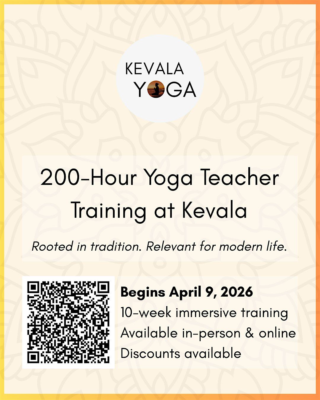 The 200-Hour Yoga Teacher Training at Kevala Yoga & Wellness is a 10-week immersive journey designed for those who wish to deepen their personal practice or step onto the path of teaching.