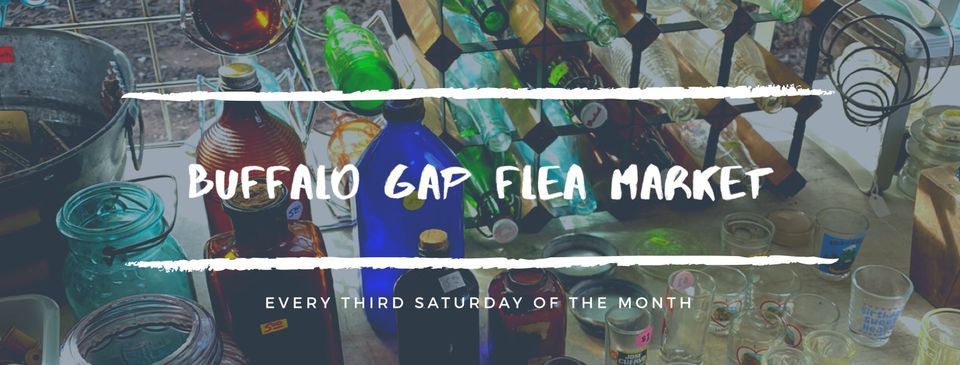 The Buffalo Gap Flea Market is in the third saturday of every month and welcomes all vendors to come out and bring your antiques, handmade items, food trucks, and animals for the town of Buffalo Gap to see.