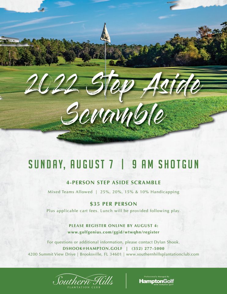 Southern Hills Plantation Club is a private Community, events are for Members and their Guests only. Only RSVPs on eSoHilly.com will be accepted. If you are interested in becoming a Member, click here: https://bit.ly/36b5Jia to find out about our Membership options.⛳ Save the date...The 2022 Step Aside Scramble is Sunday, August 7!