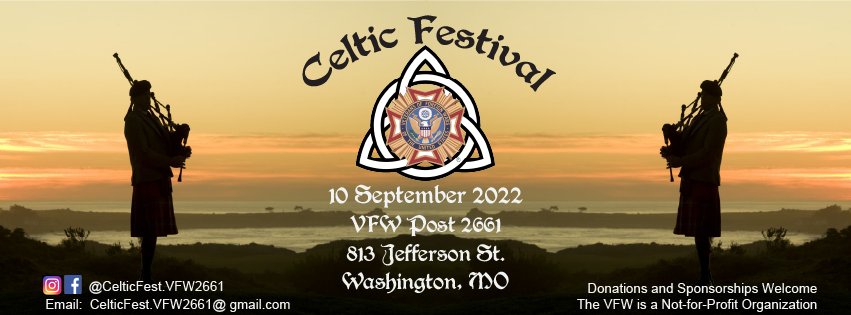 The VFW is TRULY honored to be able to provide this unique festival to Washington and the Franklin County, MO area! We are a non-profit organization and ALL proceeds from this event go directly to serving our Veterans. Please like, follow, and share our Facebook and Instagram pages at @CelticFest.VFW2661 or email [email protected] for more information.