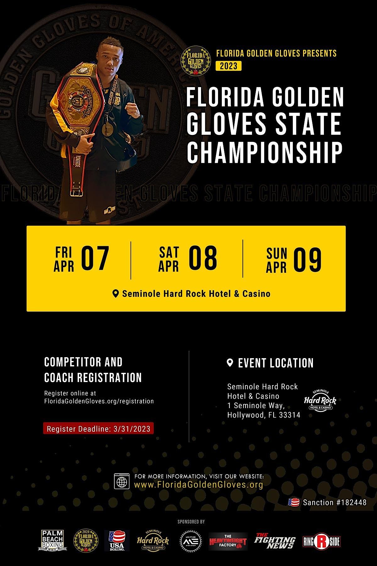 Florida Golden Gloves & Palm Beach Boxing: The 2023 Florida Golden Gloves State Tournament. Join us for food, fun, music, and live boxing!About this Event