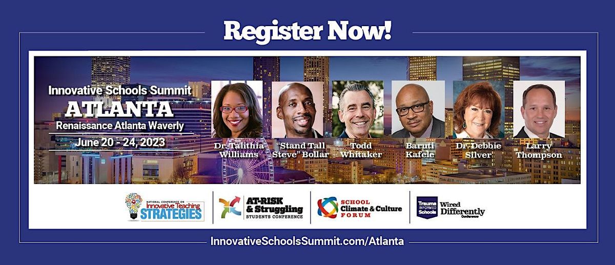 In-Person Attendance:Held at the Atlanta Renaissance Waverly from June 20-24, 2023, the Innovative Schools Summit Atlanta includes access to 4 Conferences for the Price of One!
