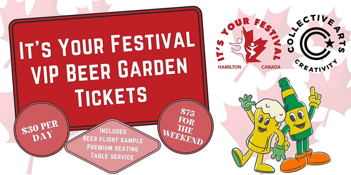 NEW FOR 2023: Buy tickets for the It's Your Festival VIP Beer Garden section for premium seating, a 3-flight sample from our Collective Arts beer and cocktail selection AND table service. Find your best seat and spend the weekend at Gage Park to make It's Your Festival TRULY YOURS!