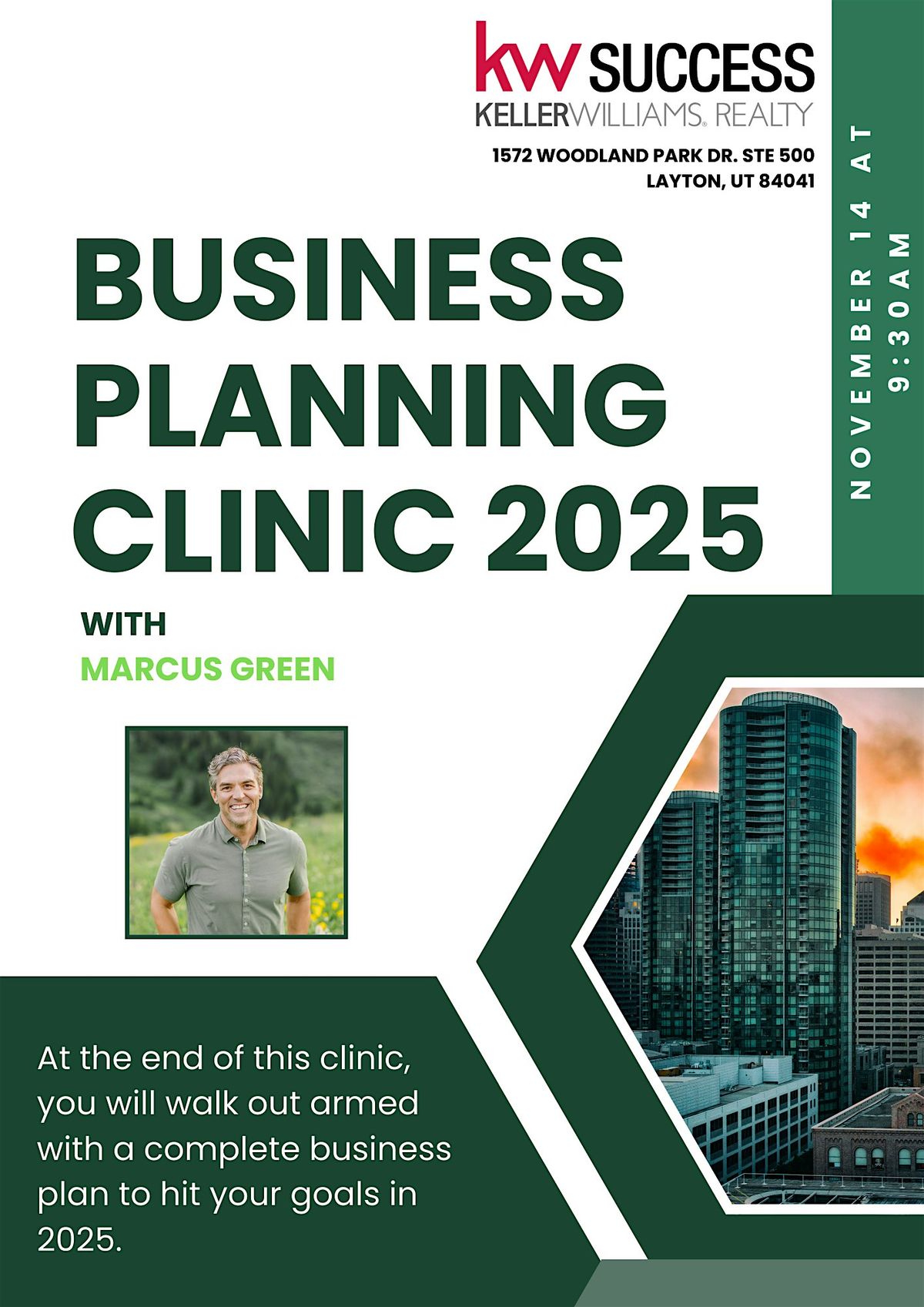 Welcome to the 2024 Business Planning Clinic! Join us at KW Success Keller Williams Realty - Layton for a day filled with valuable insights and strategies to help you plan for a successful year ahead. Our expert speakers will share their tips and tricks for creating a solid business plan that will set you up for growth and success. Don't miss this opportunity to network with like-minded professionals and take your business to the next level. Reserve your spot today!