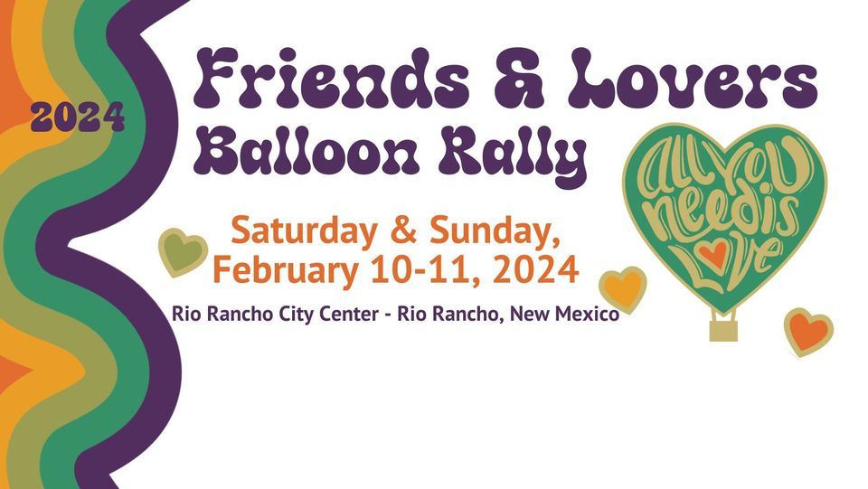 Join us for the 2024 Friends and Lovers Balloon Rally hosted by the Albuquerque Aerostat Ascension Association (Quad A) on February 10-11, 2024!We are thrilled to announce that this year's rally will be held in Rio Rancho, as a proactive response to align with FAA guidelines and ensure a safe and enjoyable experience for all participants.