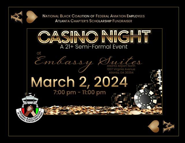 Come out and support the Casino Night Scholarship Fundraiser hosted by the Atlanta Chapter of the National Black Coalition of Federal Aviation Employees (NBCFAE). This is our signature event and we guarantee a delightful evening of gaming, music and photos!