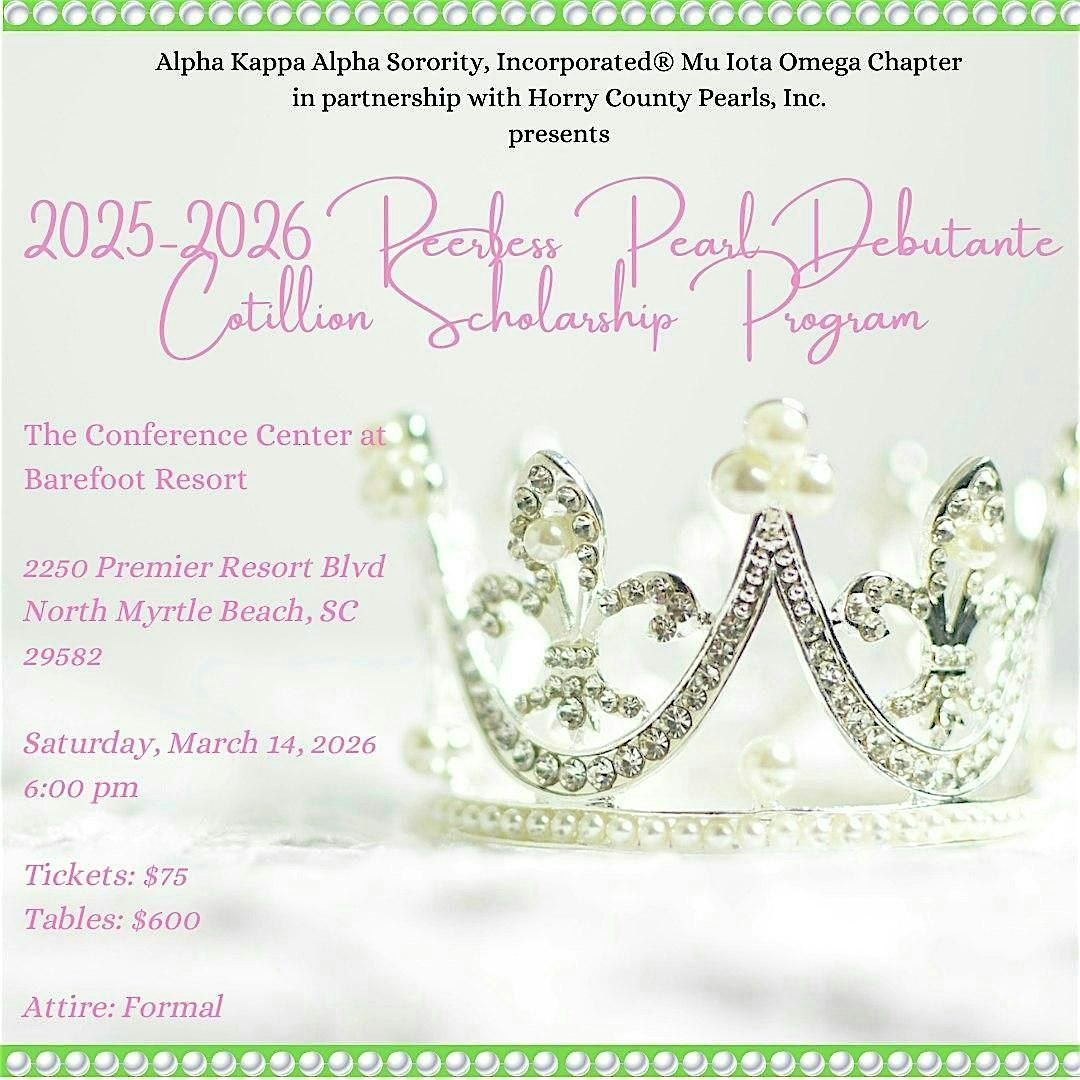 The 30th Cotillion Scholarship Program is being hosted by Alpha Kappa Alpha Sorority, Inc. Mu Iota Omega Chapter in partnership with Horry County Pearls, Inc.