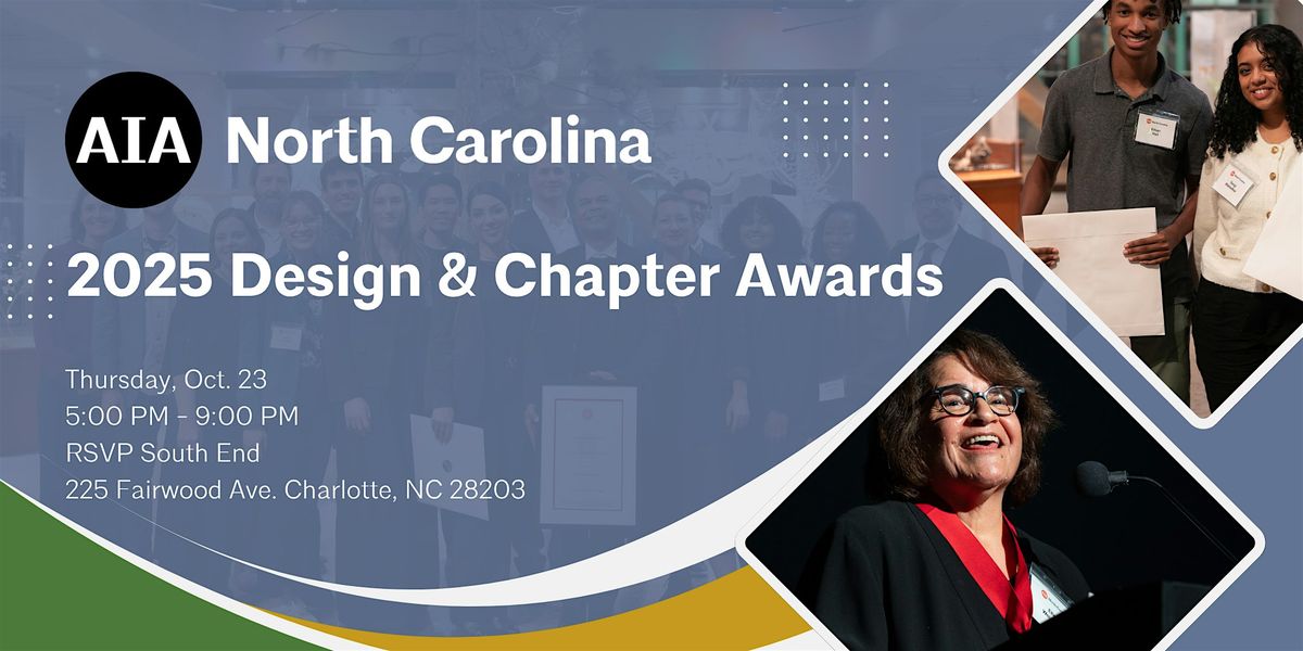 Join us on Thursday, October 23rd for the AIA NC Design & Chapter Awards in Charlotte! Celebrate excellence in architecture, honoring outstanding projects and individuals who have made significant contributions to the built environment across our state.