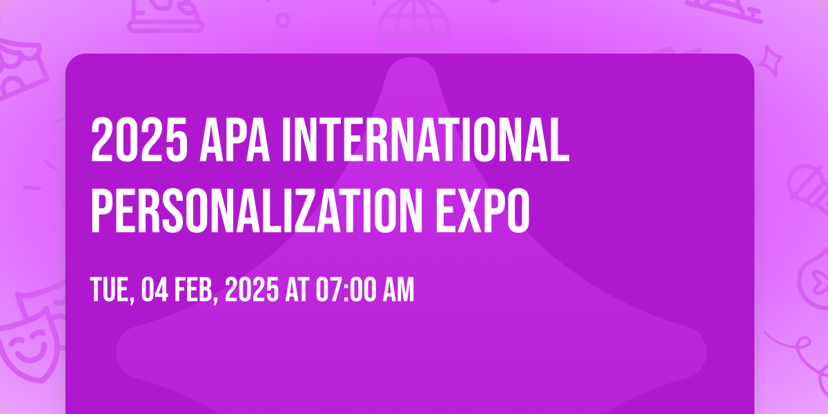 The industry's must-attend trade show returns on February 4–7, 2025! Whether you're looking to scale your personalization business or gain knowledge and skills, the APA Expo is the can't miss event where you can find everything you need to be successful in the personalization industry.