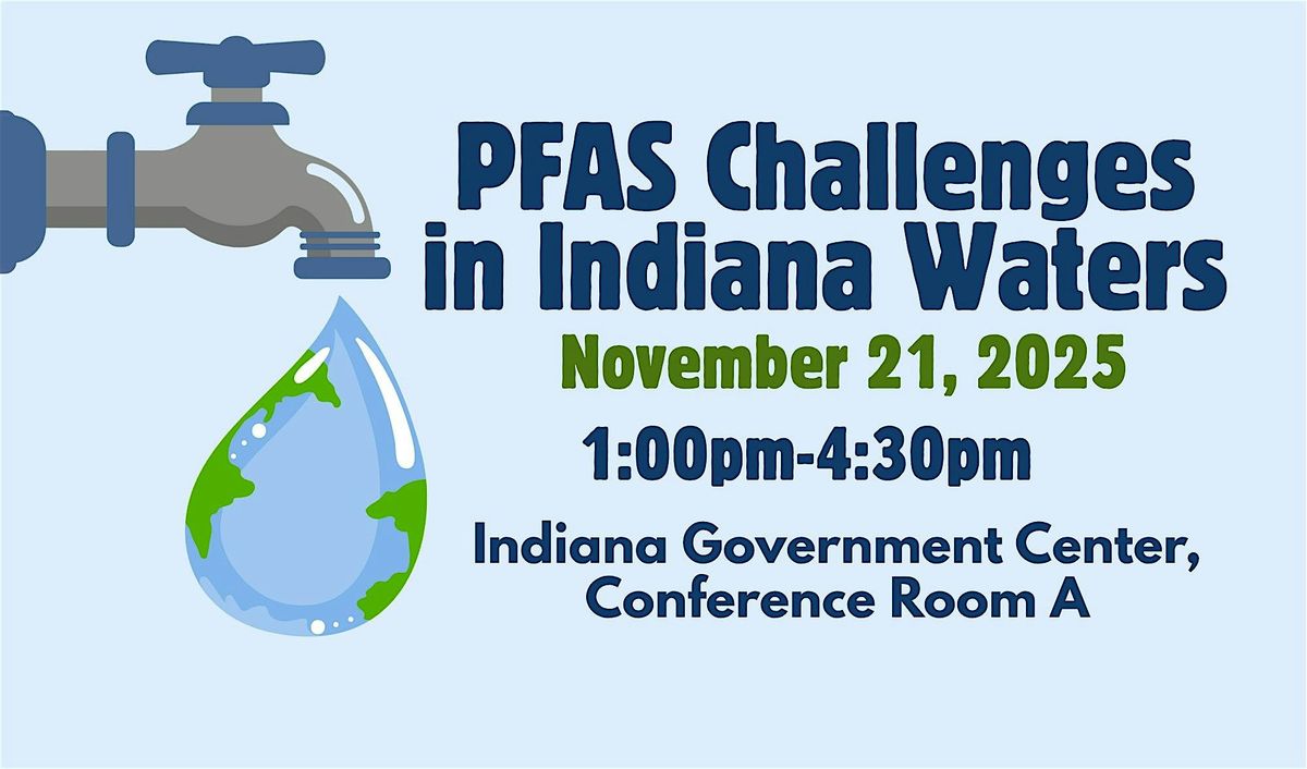 Join us in downtown Indianapolis at the Indiana Government Center South (Conf Room A) for an afternoon of learning about PFAS Challenges in Indiana Waters from 1:00 pm to 4:30 pm.