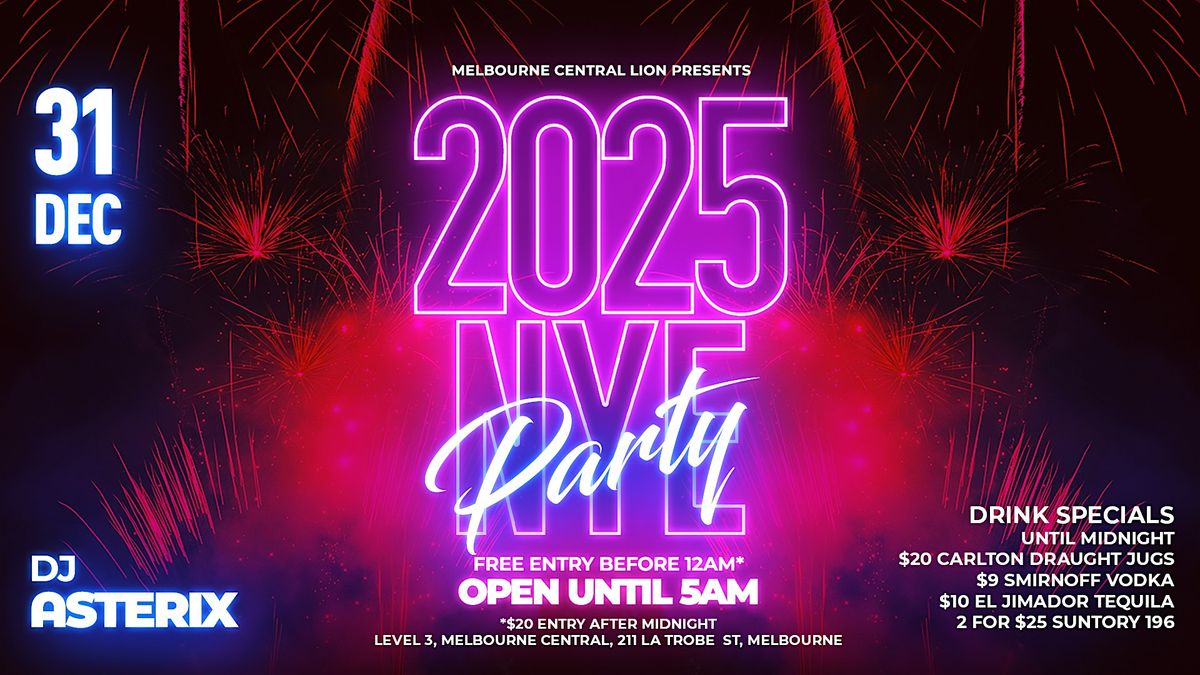 ๐ NYE 2025 Party at Melbourne Central Lion Hotel! ๐พ