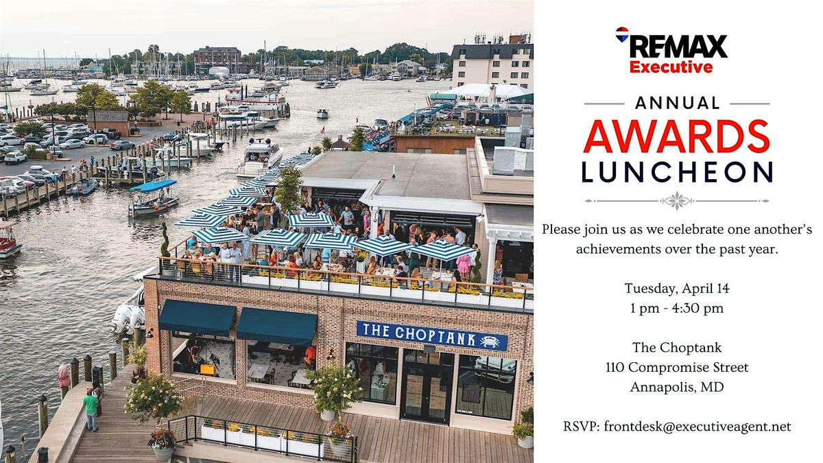 Celebrate the top achievers in style at this exciting in-person event. Network, enjoy great vibes, and cheer on the best in the business. This event promises fun, inspiration, and a chance to connect face-to-face. Lunch followed by an awards presentaion and then coctails with a spectacular view of downtown Annapolis. Don't miss out on the party of the year!