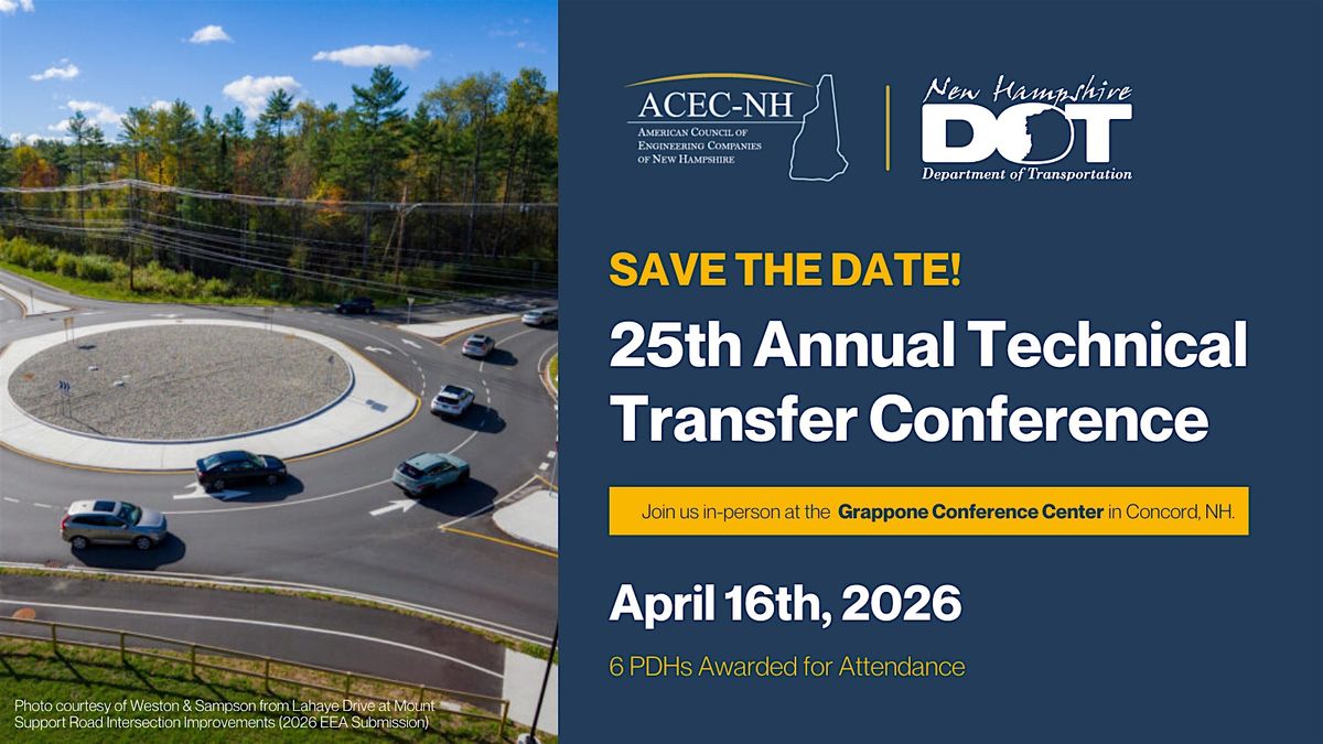 Don't miss out on this valuable opportunity to connect with colleagues, learn from the best, and stay updated on the latest trends in the engineering and transportation sectors. Register now to secure your spot at the 2026 ACEC-NH & NHDOT Technical Exchange Conference!