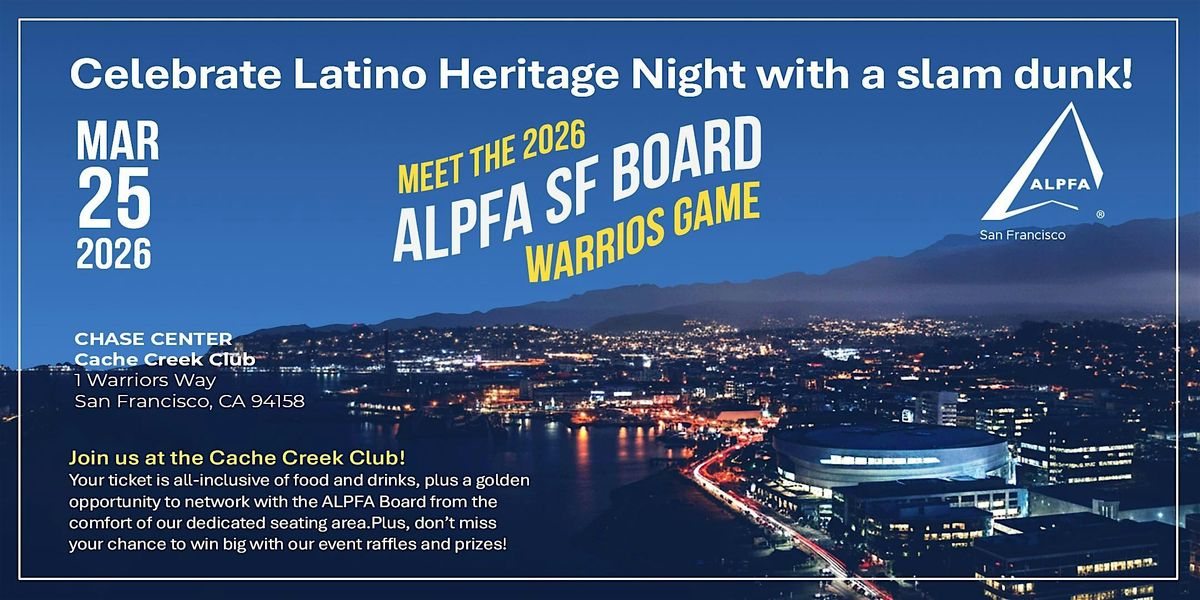 Join ALPFA San Francisco as we launch 2026 with an unforgettable evening at the Warriors game inside the exclusive Cache Creek Club at Chase Center.