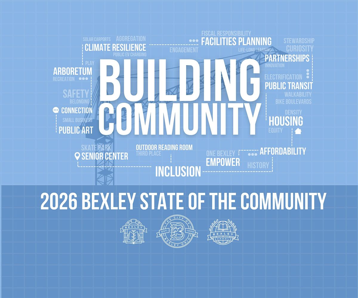 New this year, arrive at 6:00 pm for a community resource fair and light refreshments before the full address starts at 6:30 pm. Come to connect, learn, and be part of what’s building next for Bexley.