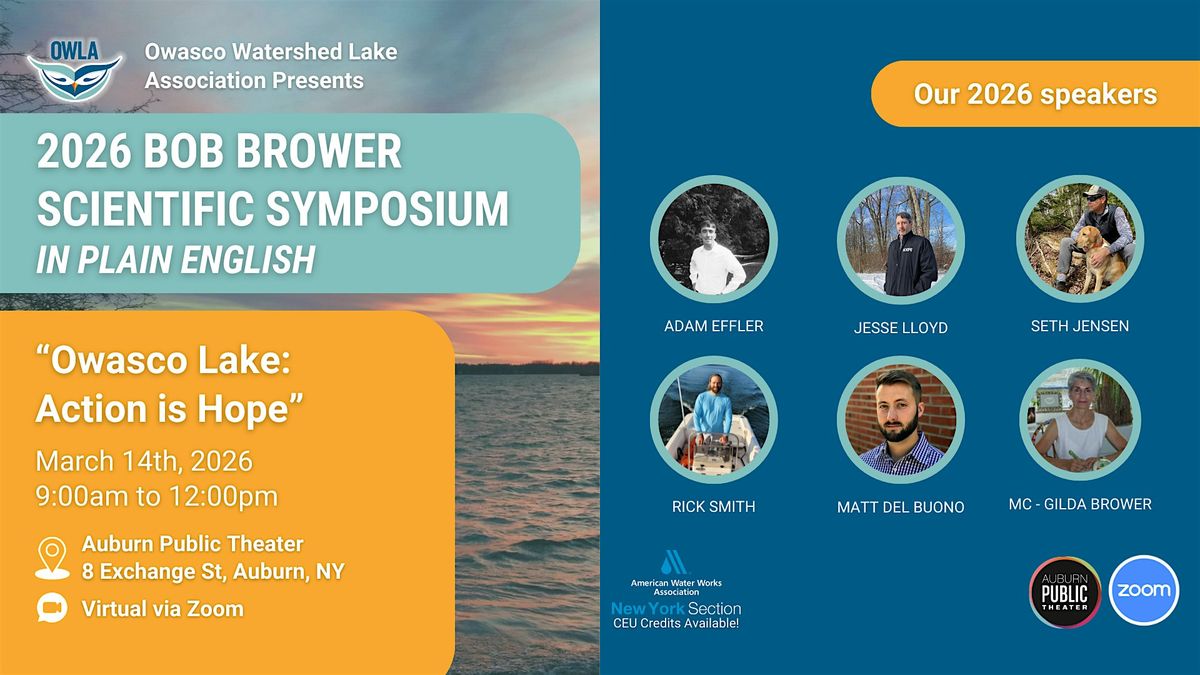 Join us in person or virtually for the 2026 Bob Brower Scientific Symposium. Please join us and learn more about the current state of Owasco Lake and how YOU can take action to help our lake be resilient to the impacts of climate change.