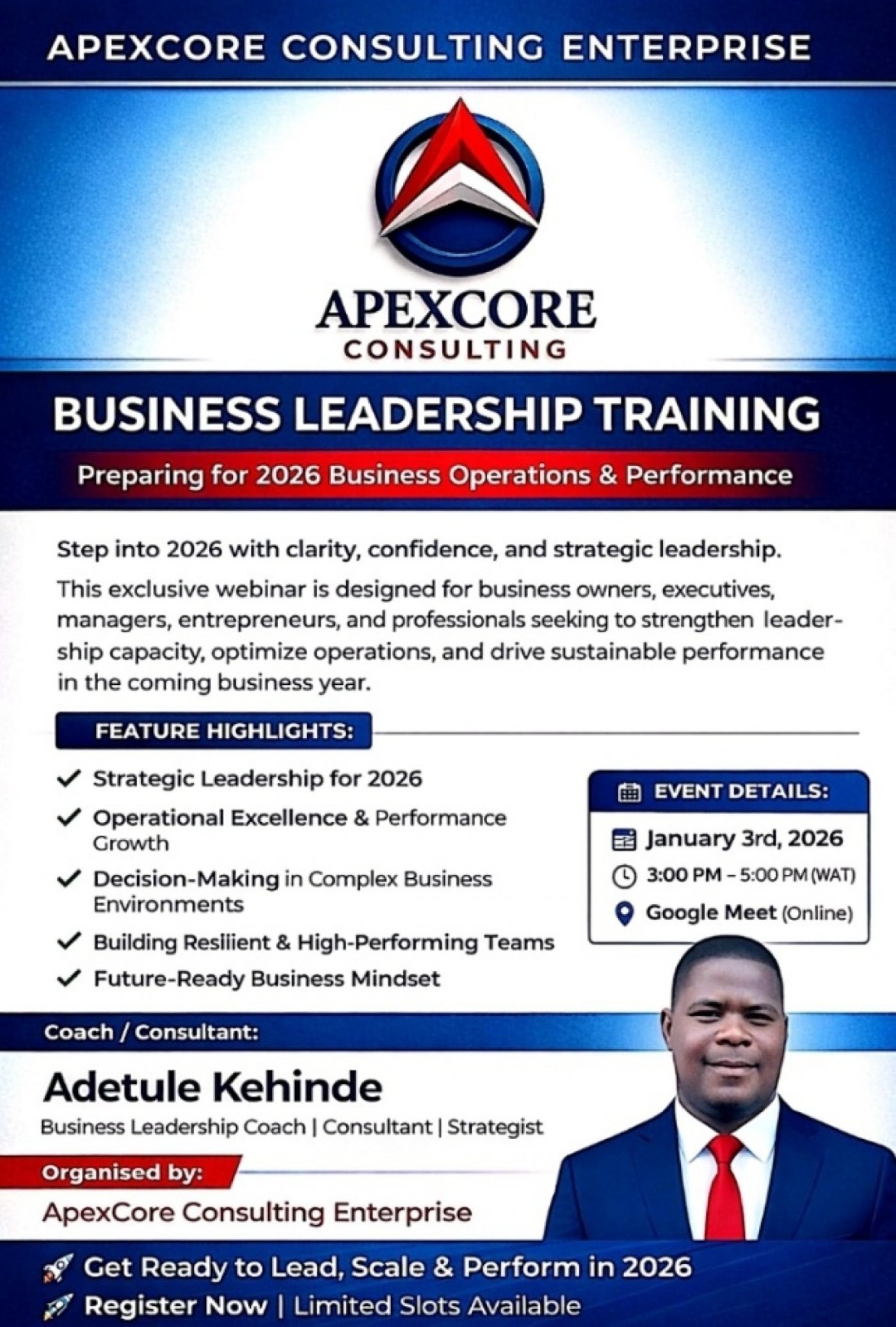 Facilitated by Kehinde Sola Adetule– Business Leadership Coach & Consultant.