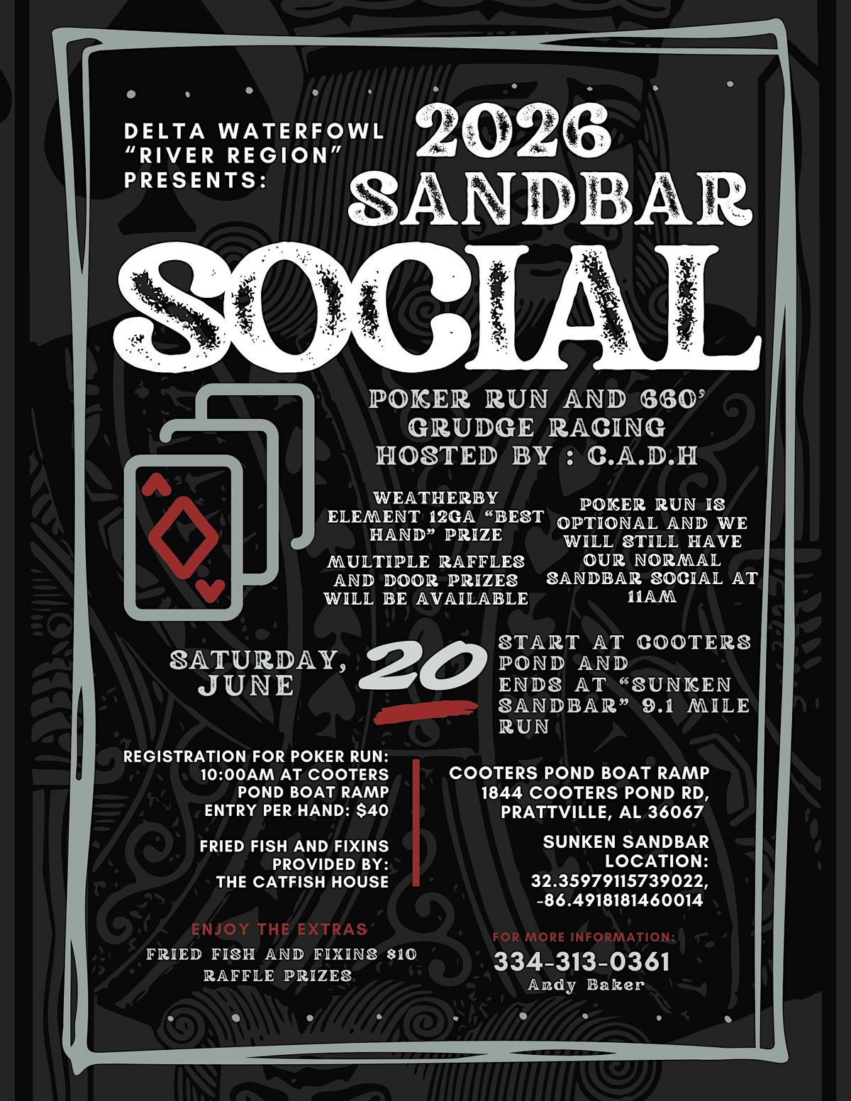 Join us at the 2026 Delta Waterfowl Sandbar Social for some fun, friends, and great vibes by the water!About this Event