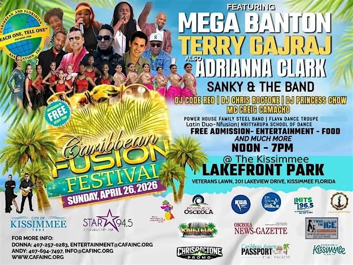 Join us for the 2026 Caribbean Fusion Festival, a vibrant celebration of Caribbean culture, music, and community in the heart of Kissimmee! This family-friendly event brings together the rich traditions and diverse influences of the Caribbean for an unforgettable day along the lakefront.