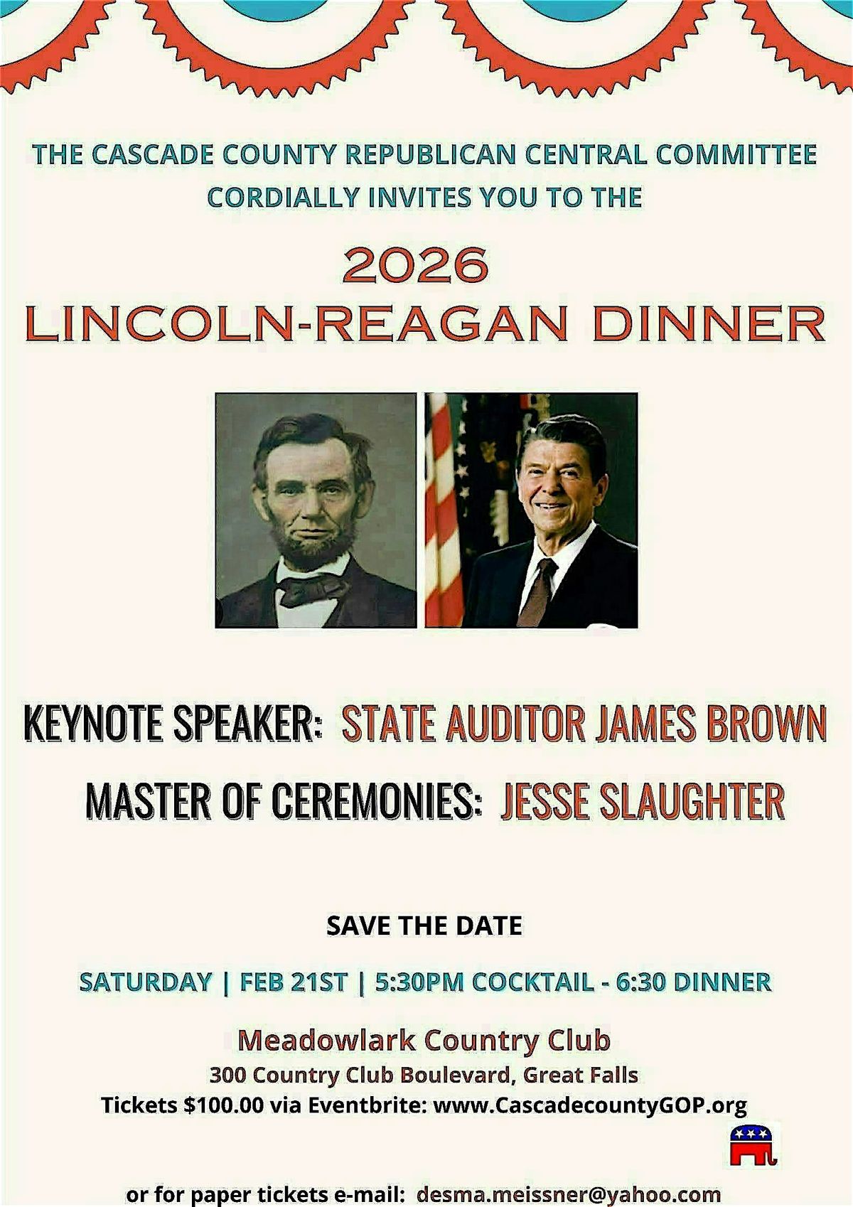 2026 Cascade County Republican Central Committee Lincoln Reagan Dinner
