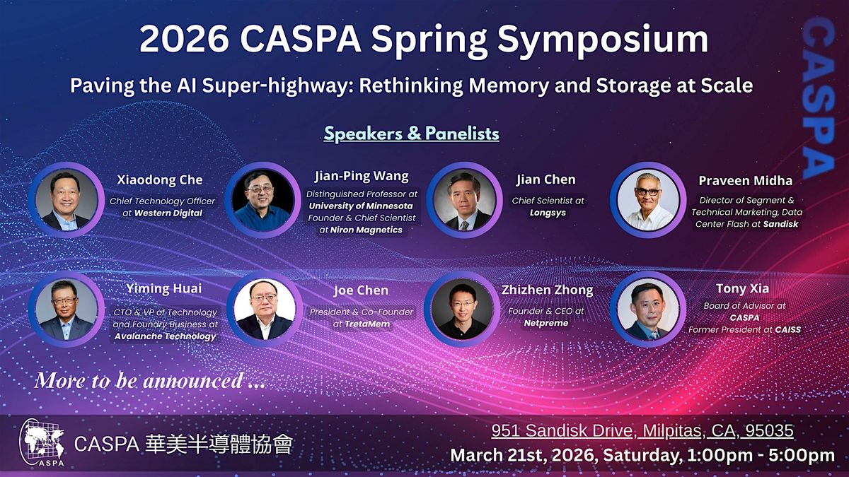 You’re invited to CASPA’s 2026 Spring Symposium, an in-person event and the first installment of CASPA’s year-round “AI Super-Highway” symposium series. The symposium will take place on Saturday, March 21, 2026, from 1:00 PM to 5:00 PM at Sandisk auditorium, 951 Sandisk Drive, Milpitas, CA.