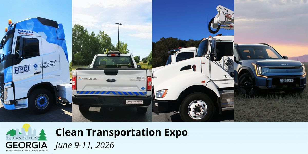 Welcome to the 2026 Clean Transportation Expo! The Clean Transportation Expo will be an opportunity to build public-private partnerships and talk about successes and challenges with all forms of clean transportation, both within Georgia and the region. Panels will cover the latest with Hydrogen, Compressed and Renewable Natural Gas, Sustainable Aviation Fuel, Electrification, Propane, and more. The event will take place on Tuesday, June 9th, 2026 at the Georgia International Convention Center. Don't miss out on this exciting opportunity to be part of the green revolution! If you wish to be more involved in the making of this event, consider becoming a sponsor.
