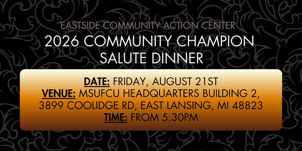 Join us on Friday, August 21, 2026 from 5:30 PM at MSUFCU Community Room, Headquarters 2 as we come together to celebrate and honor a remarkable community champion who has made a lasting impact on Lansing’s Eastside.
