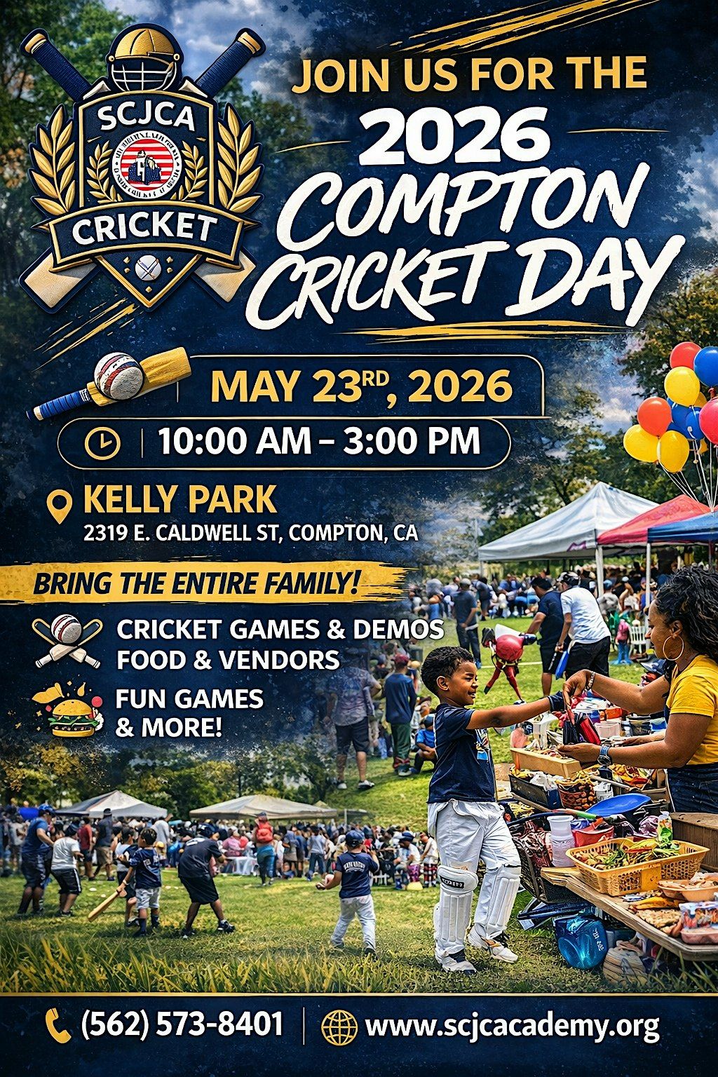 Join the Southern California Junior Cricket Academy (SCJCA) and the City of Compton Parks & Recreation Department for a fun-filled day celebrating community, youth sports, and the global game of cricket.