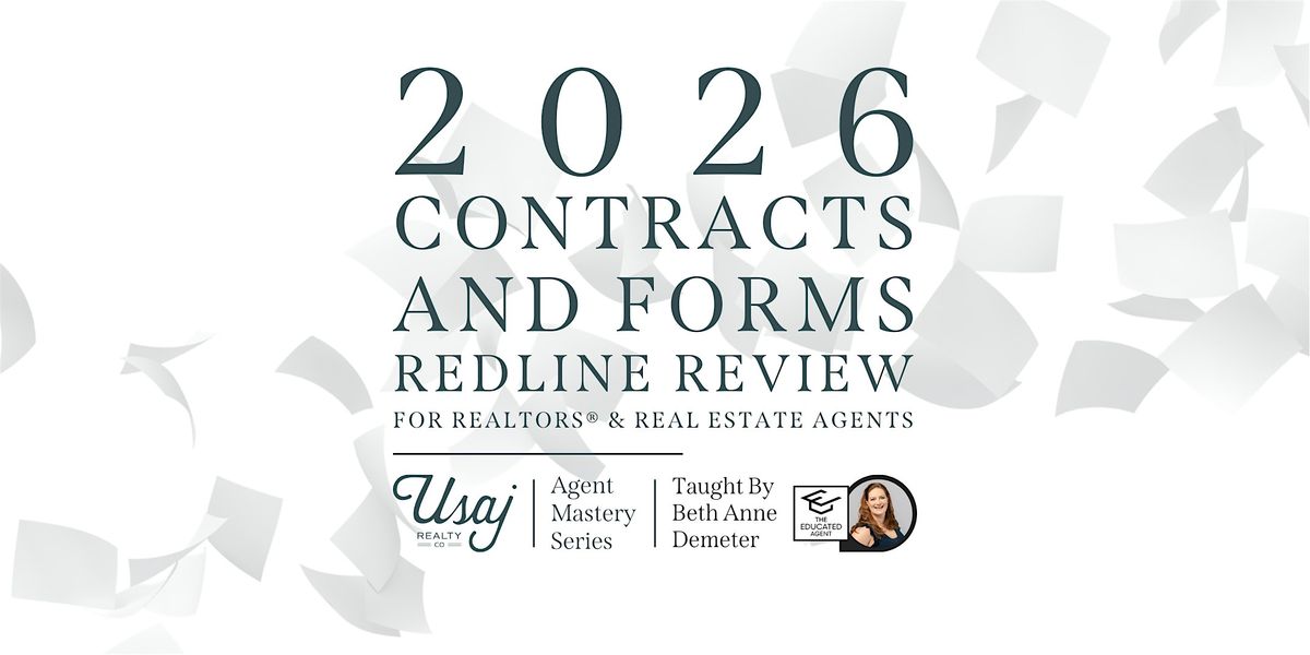 Elevate and evolve your real estate business with a review of the most relevant points in the 2026 Contracts & Forms! Confidently preparing, negotiating and explaining real estate contracts means having a head start on changes. This class will review the redline version of contracts and forms recently updated and effective for use starting January 1st, 2026. We'll review the most significant revisions, related regulatory changes and house / senate bills, contributing Commission Position Statements and other issues affecting real estate.