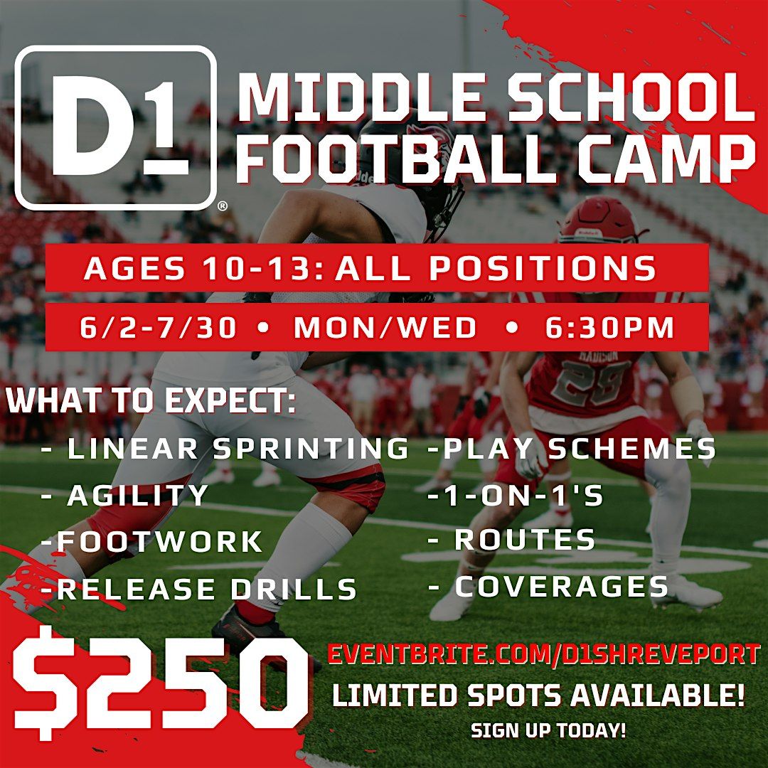 2026 D1 MIDDLE SCHOOL FOOTBALL CAMP (AGES 10-13)