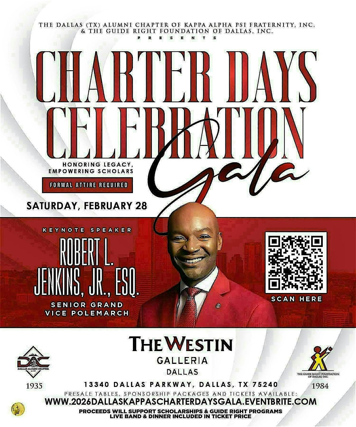 Welcome to the Dallas (TX) Alumni Chapter of Kappa Alpha Psi Fraternity, Inc. and the Guide Right Foundation of Dallas, Inc. Charter Days Celebration Gala — Honoring Legacy, Empowering Scholars.