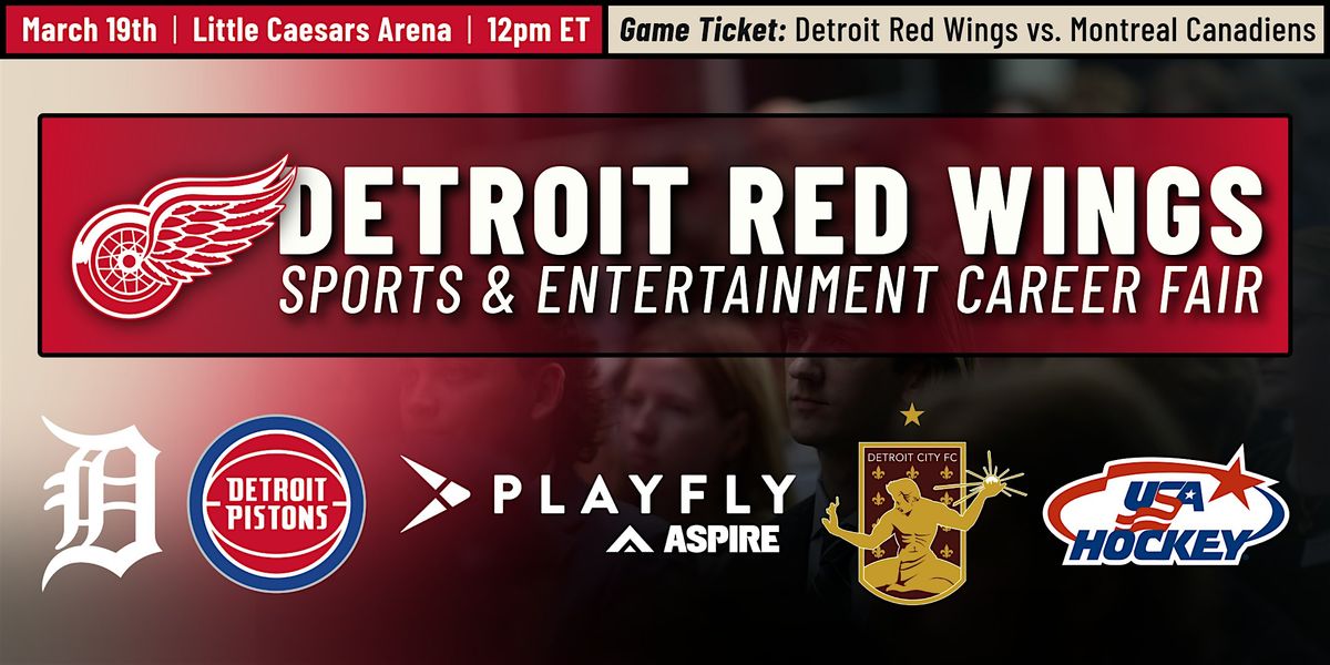 Please join us for the 2026 Detroit Red Wings Sports & Entertainment Career Fair on Thursday, March 19th! Don’t miss this unique opportunity to meet sports employers from organizations in Detroit and the surrounding area!