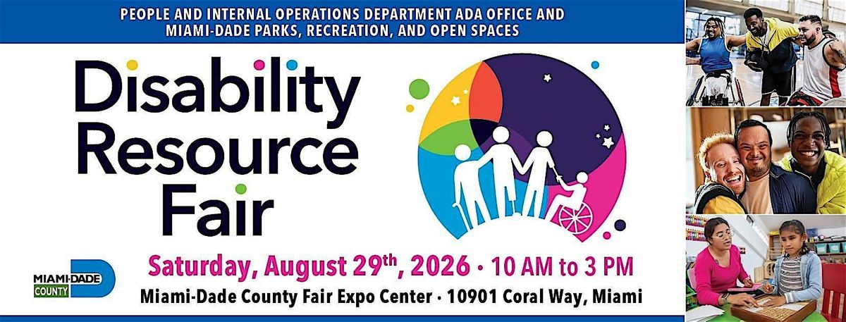 Welcome to the 2026 Disability Resource Fair! Join us at the Miami-Dade County Fair & Exposition, for a day filled with valuable resources and information for individuals with disabilities. Discover a variety of services, products, and organizations dedicated to enhancing the lives of those with disabilities. Whether you're seeking support, education, or simply looking to connect with others in the community, this event is the place to be. Don't miss out on this opportunity to explore over 175 resources in the areas of: