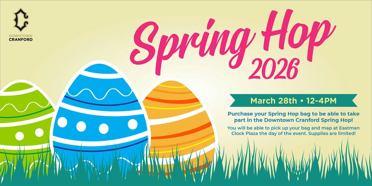 The Spring Hop returns this year and will take place on Saturday, March 28th. You will have two options of time slots 12-2pm or 2-4pm. To take part, just purchase a Spring Hop basket - supplies are limited. Children will be able to pick up eggs at 15+ downtown businesses and every participant will also win a Golden Egg! Each participant will also receive a $5 Downtown Cranford gift card which they can use at over 140 participating Cranford stores. Registered participants can pick bags up starting at 11:45am the day of the event at Eastman Clock Plaza. The Easter Bunny will be making a special appearance.
