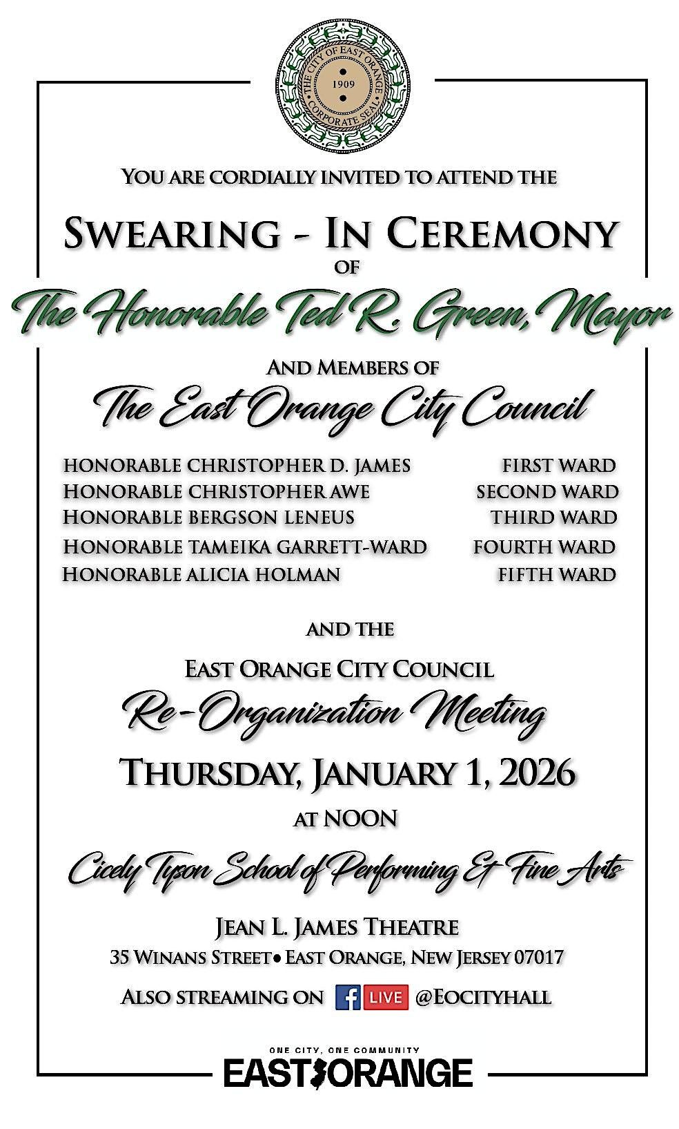 2026 EAST ORANGE SWEARING-IN CEREMONY & RE-ORGANIZATION MEETING
