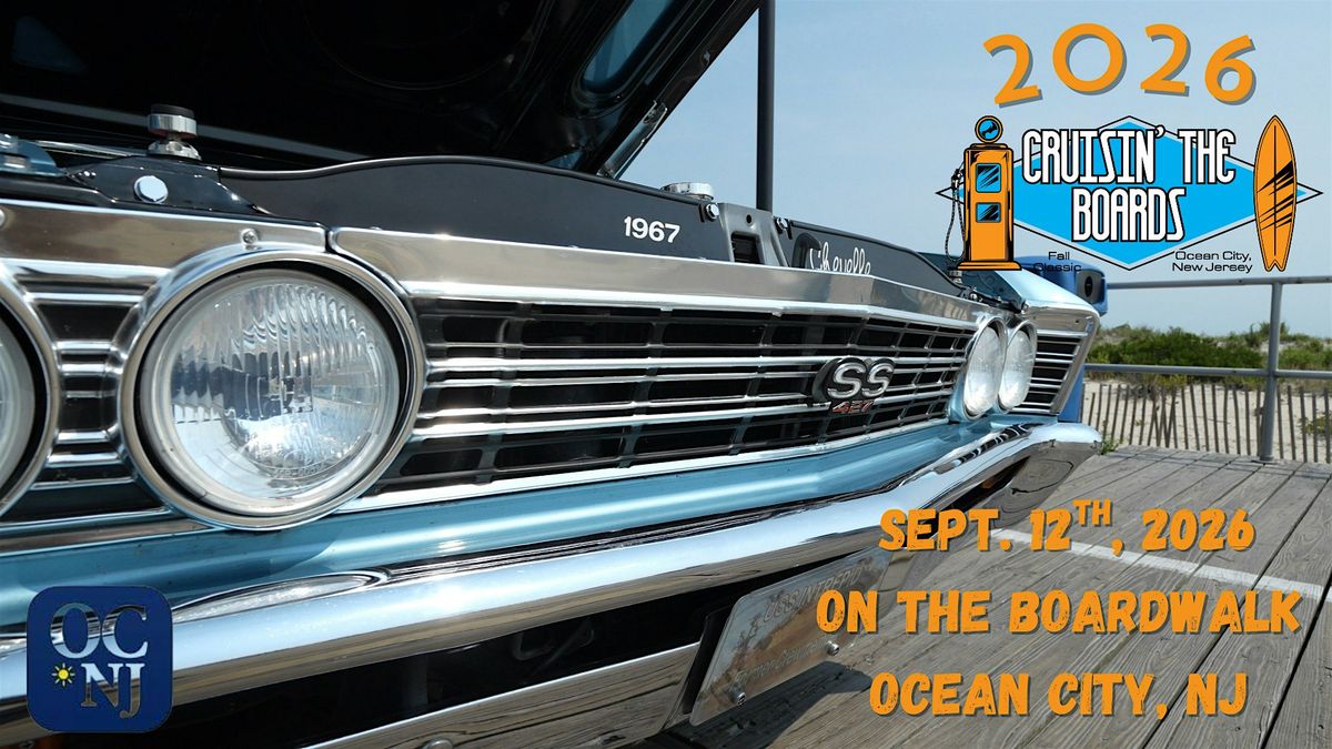 Welcome to the 2026 Fall Cruisin' the Boards - 51st Annual Classic Car and Street Rod show taking place on the boardwalk in Ocean City NJ on September 12th, 2026. This annual Classic Car and Street Rod show, for vehicles 1989 and older, will feature Fords, Chevys, Pontiacs, and Mopars all on display on the beautiful family friendly Ocean City Boardwalk.