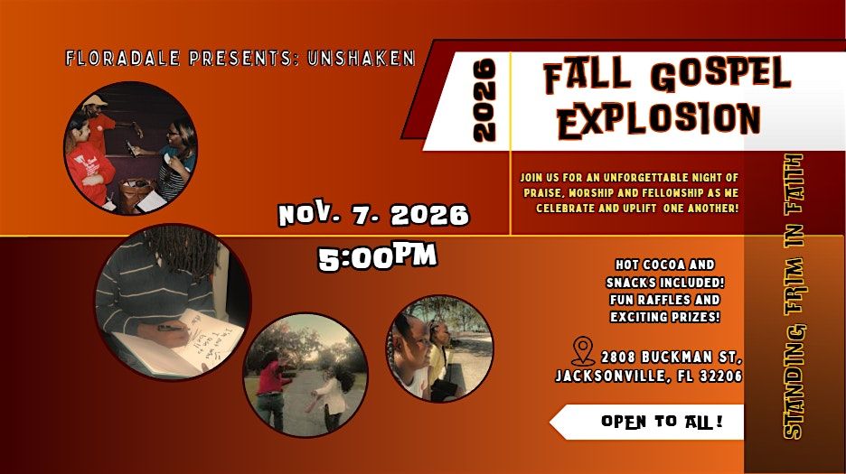 Get ready to feel the spirit at the 2026 Fall Gospel Explosion: United in Faith! This in-person event is all about celebrating faith, joy, and community. In a world that feels unstable, Unshaken declares that God’s people stand firm on the rock that never moves. This fall, the goal is to remind believers that even in uncertain times, their foundation in Christ remains secure. Join us for an uplifting experience filled with celebration of the gospel. Whether you're coming solo or with friends, come as you are and be part of something truly special. Don’t miss out on this amazing gathering where faith brings us all together!