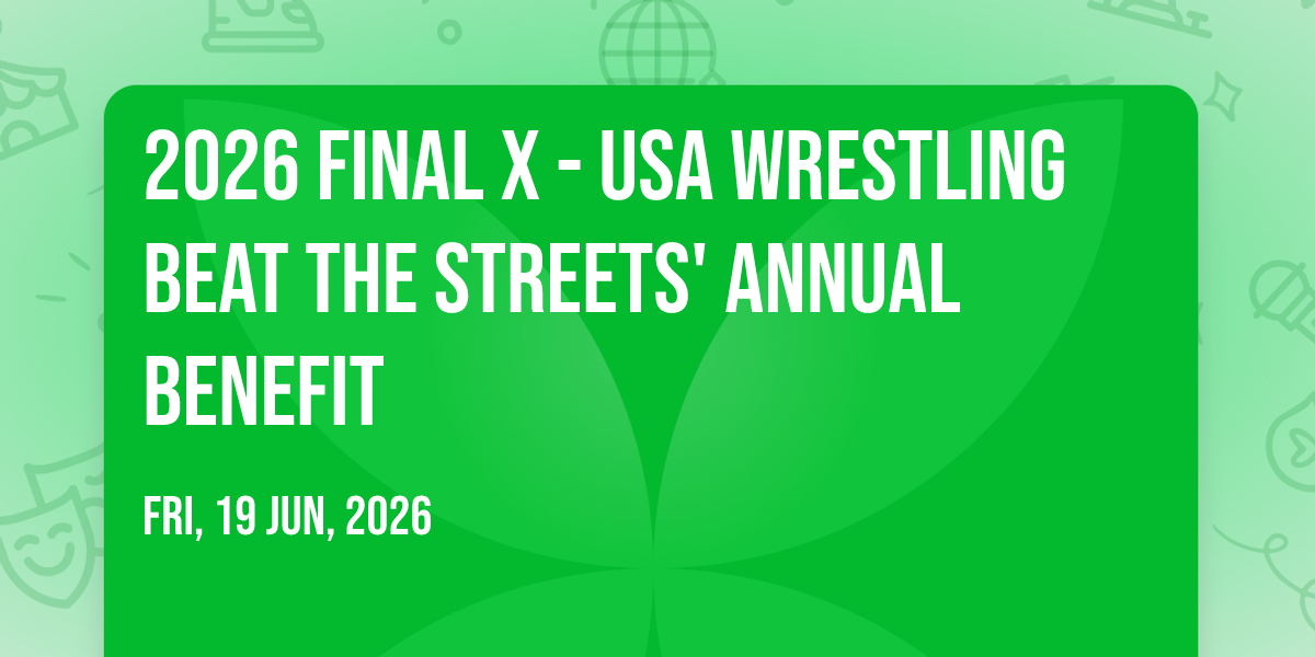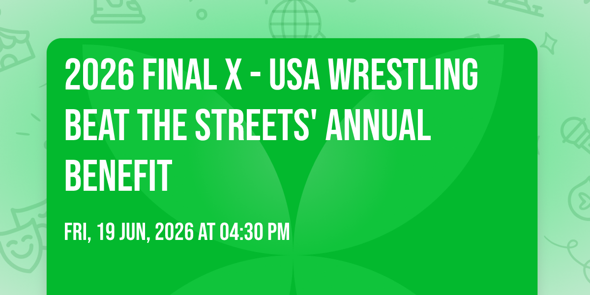 📍 Location: 40.7332, -74.1717🌟 Step into a world of wonder at 2026 FINAL X - USA Wrestling Beat the Streets' Annual Benefit, where extraordinary moments await! 🏛️ Located at Prudential Center in dynamic Newark, NJ, this event will become the talk of the town. 📅 Join us on June 19th, 2026 at 04:30 PM for a celebration that defies the ordinary. ✨ This curated experience brings together the best of entertainment, culture, and community spirit. Every detail has been thoughtfully planned to ensure an unforgettable experience for all our guests. 🎯 Take advantage of this opportunity to be part of something special. 🎊 Early registration is recommended as space is limited!