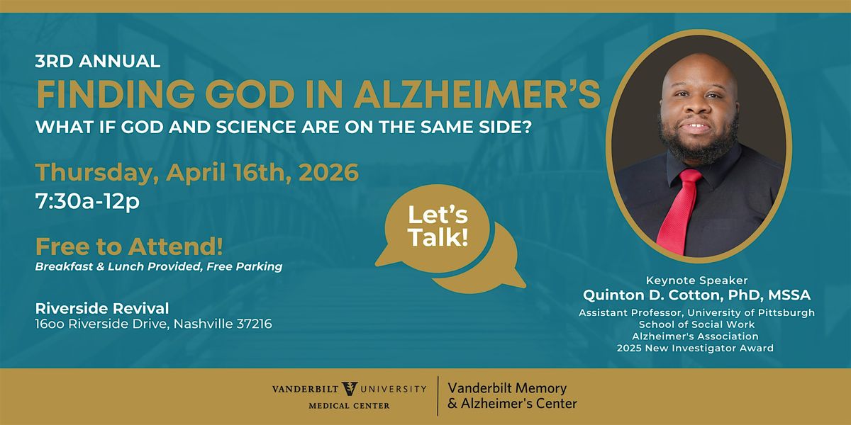 Please join us for the 3rd annual Finding God in Alzheimer's, "What if God and Science are on The Same Side"About this Event