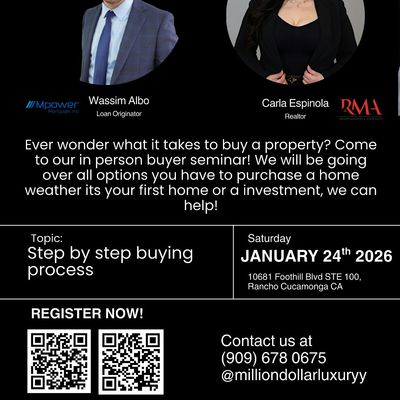 Ready to turn your homeownership dreams into reality? Join us for our Home Buyer Seminar featuring expert insights, free food and drinks, and fun raffle prizes! Learn how to buy smart, negotiate strong, and avoid common mistakes—all in a welcoming, no-pressure environment.