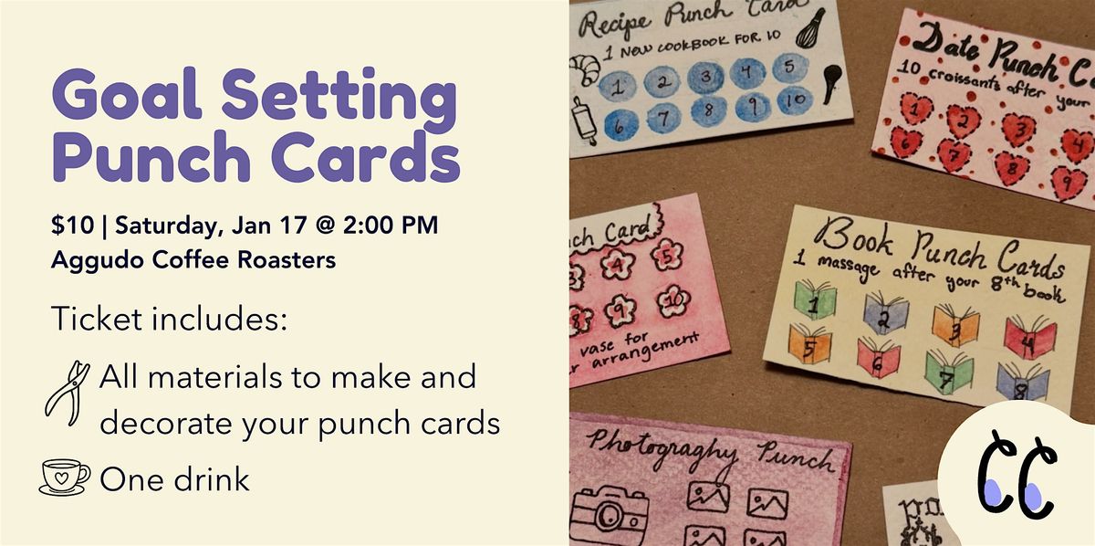 Join us to make goal setting punch cards for whatever you are trying to achieve this year. All stationary materials will be provided for you to make and decorate up to 5 punch cards. The registration fee also includes a drink at Aggudo.