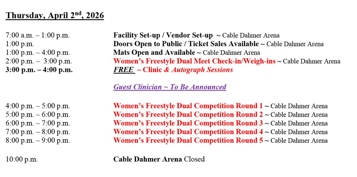 π Location: 39.0401, -94.3566π Journey into wonder at 2026 Her Circle National Duals, where extraordinary experiences await around every corner! ποΈ Set against the backdrop of Cable Dahmer Arena in dynamic Independence, MO, this event promises to exceed all expectations. π Join us on April 2nd, 2026 at 06:00 PM for a celebration that combines innovation, entertainment, and community spirit in perfect harmony. β¨ There will be an atmosphere where memories are made and stories come alive, ensuring every guest experiences something truly remarkable. π This is more than just an event; it's a journey into the extraordinary!