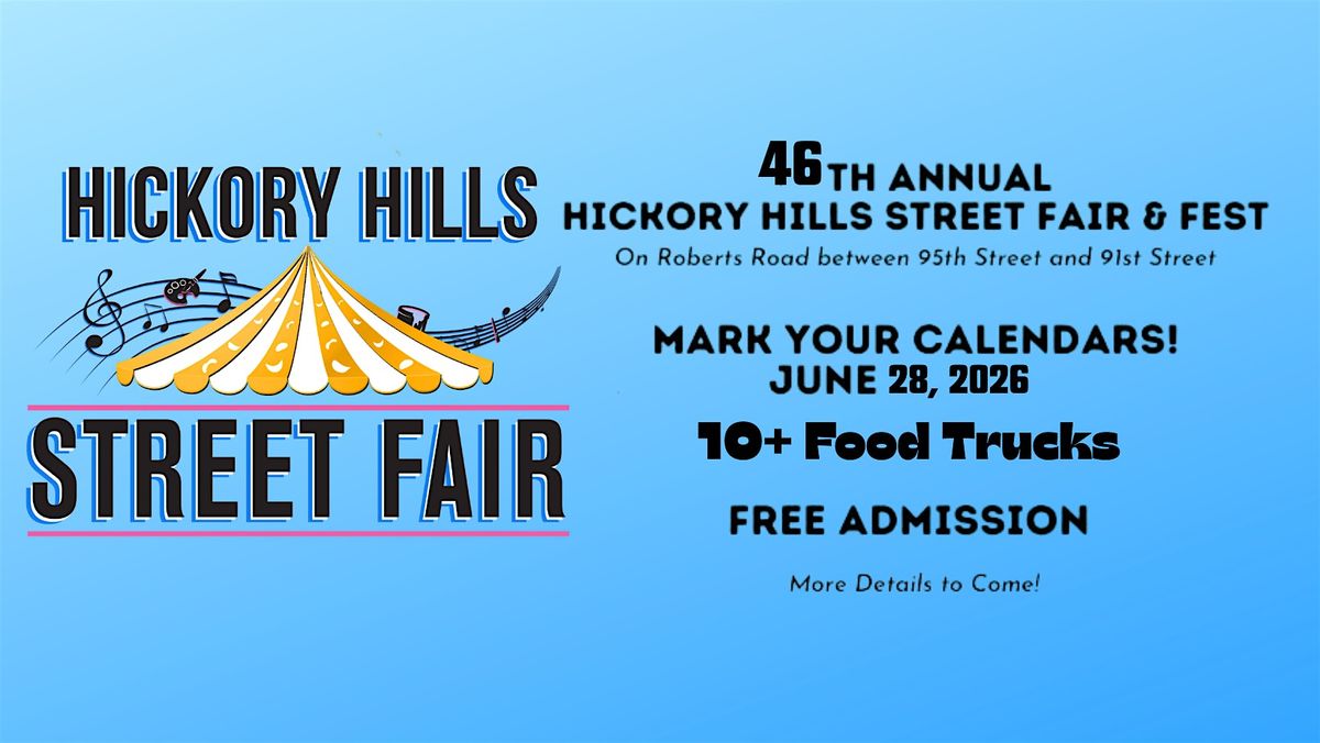 Get ready for a fun-filled day at the 2026 Hickory Hills Street Fair! This awesome in-person event brings the community together with great food, cool crafts, live tunes, and fun activities for all ages. Whether you're hanging out with friends or exploring new things, there's something for everyone to enjoy. Don’t miss out on the lively vibes and hometown spirit.Free admission & parking. See you there!