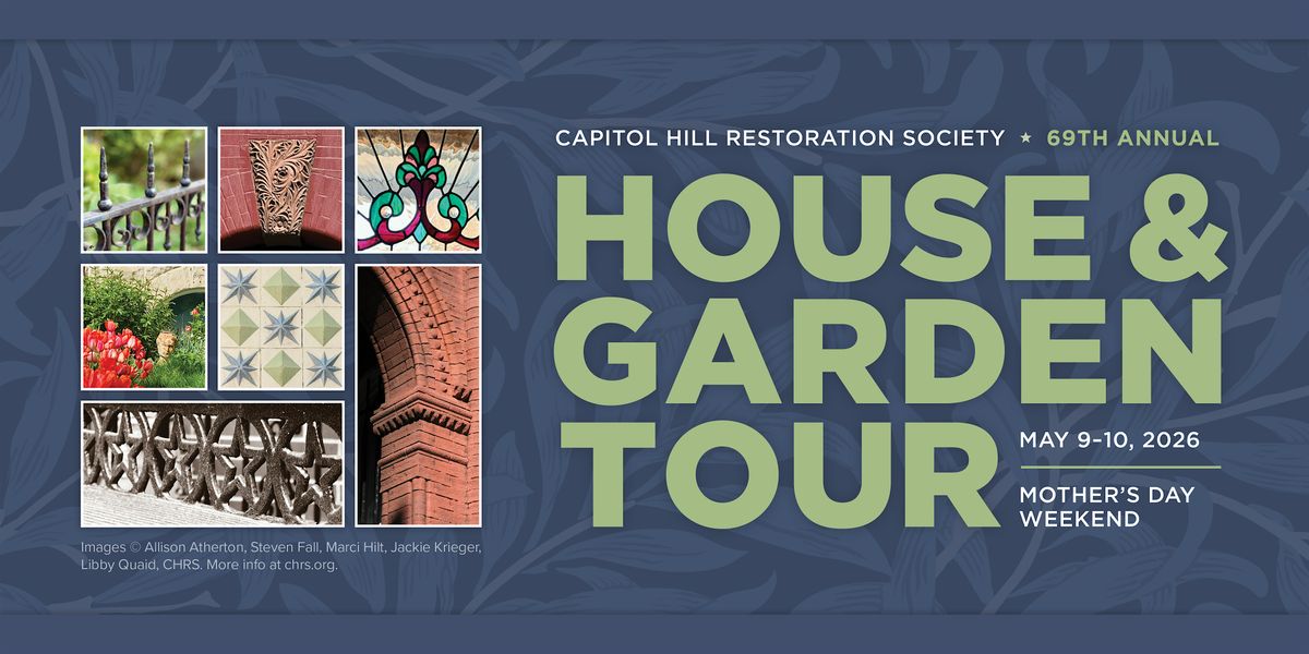 Join us for the 69th Annual Capitol Hill Restoration Society House and Garden Tour, which will feature 9 beautiful homes and gardens, and three interesting semi-public buildings, inside of the Capitol Hill Historic District. The tour is a two-day event: Saturday May 9 from 4pm-7pm and Sunday May 10 from 1pm-5pm.