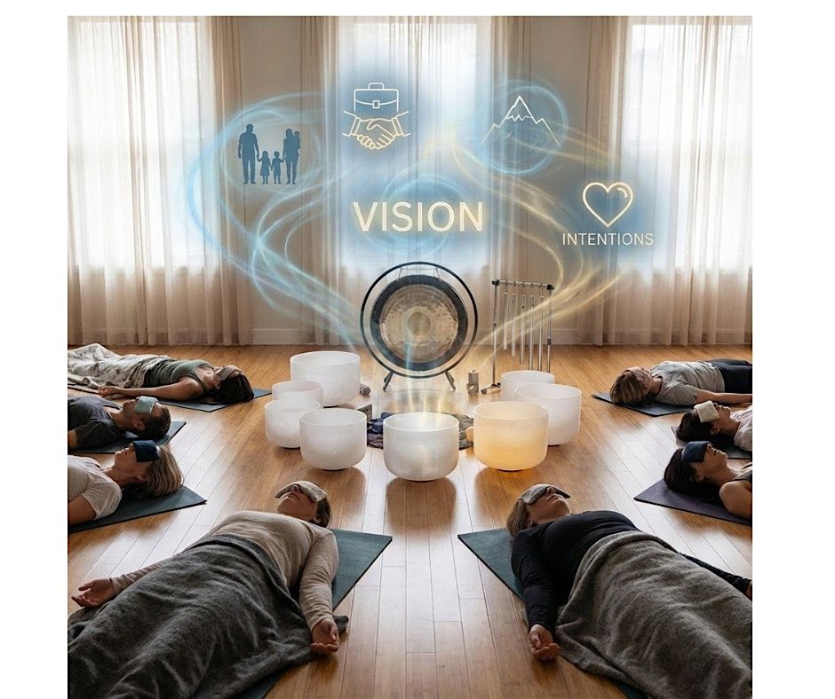 Join us for the 2026 Intentions & Vision Boarding Sound Bath Party—a 2-hour transformative experience designed to help you:
