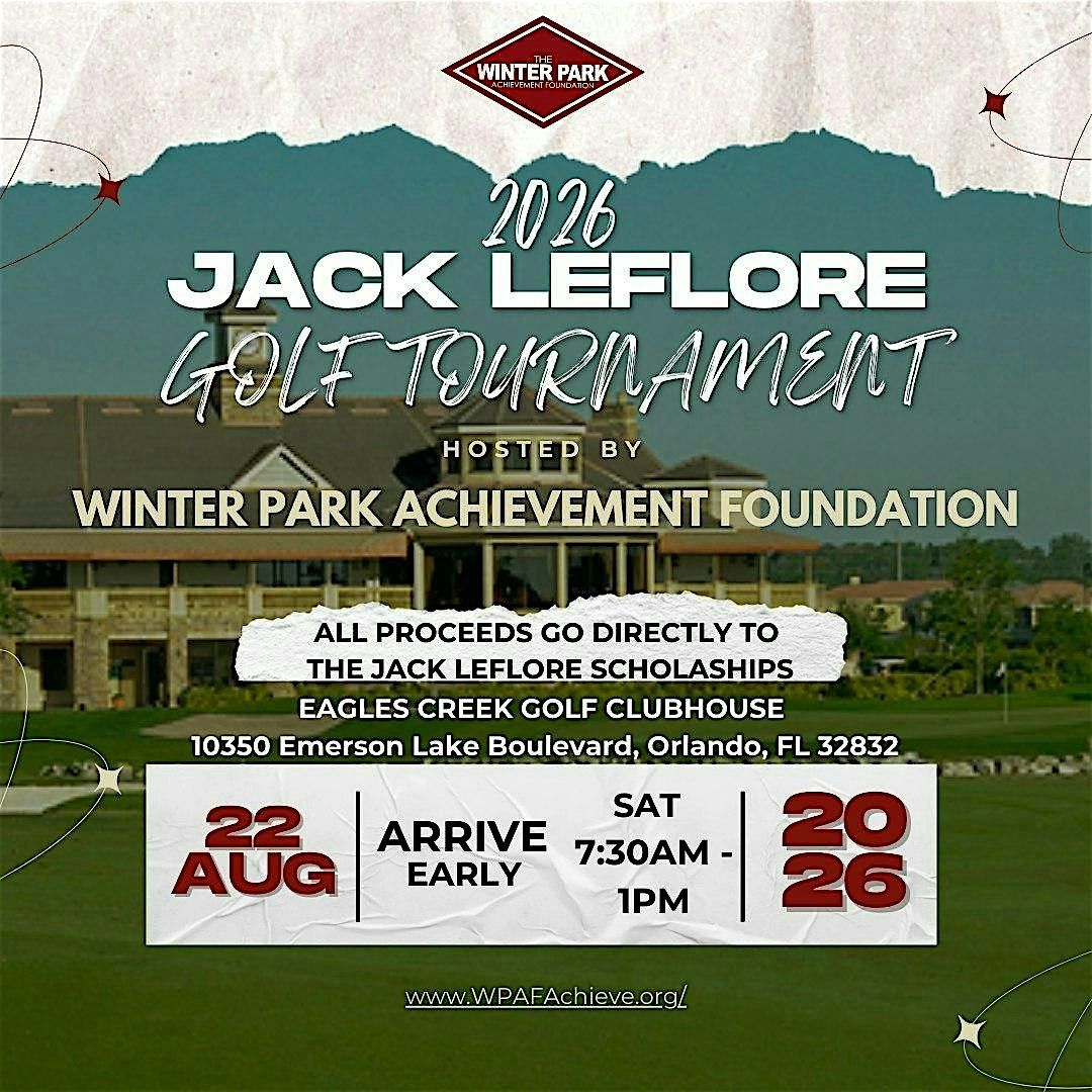 The Winter Park Achievement Foundation (WPAF) will host the 2026 Jack Leflore Memorial Golf Tournament on Saturday, August 22nd at the , located at 10350 Emerson Lake Boulevard, Orlando, FL.