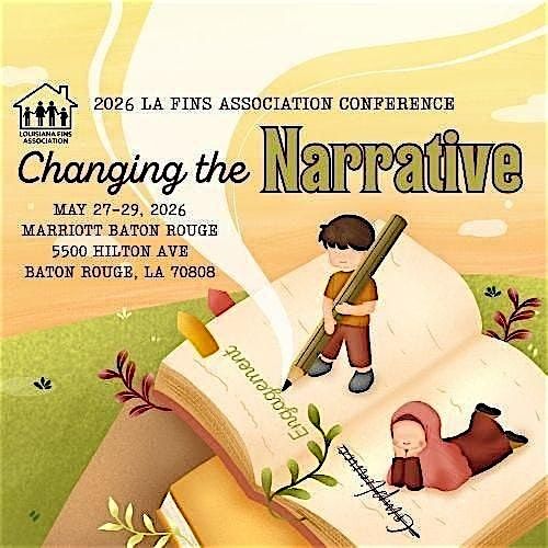 Please join us as we Change the Narrative with this year's LA FINS Association Conference! This training and networking opportunity will explore ways to move the children, youth and families we work with from compliance to engagement. The conference will feature keynote addresses from Judge Ree Casey Jones, Judge Jennifer Richardson Fore, and Secretary David Matlock. Other session topics will include: restorative practices, mental health and substance use, DCFS and FINS collaboartive efforts, new human trafficking course, internet crimes, Ethics, and MORE.