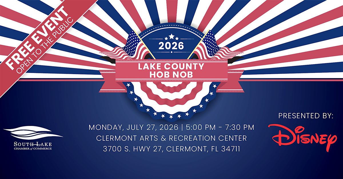 The South Lake Chamber of Commerce proudly presents the 2026 Lake County Hob Nob! This year’s Hob Nob will be held at the Clermont Arts and Recreation Center on Monday, July 27, 2026, from 5:00 p.m. to 7:30 p.m.